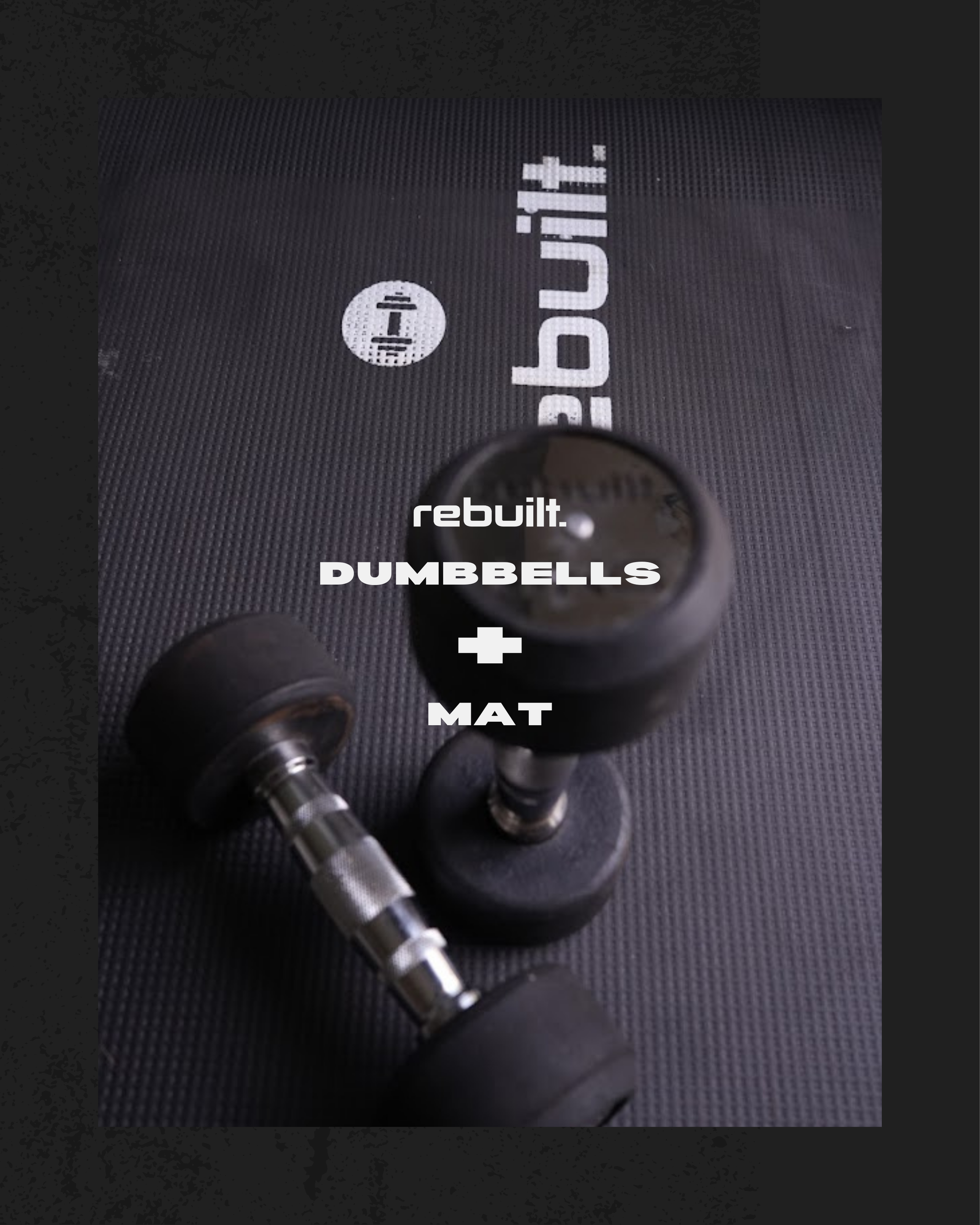This is where most Rebuilt journeys begin. Clear a corner, roll out a mat you actually like, pick up a pair that feels right and that 10-minute sweat turns into a habit. Built by lifters, for lifters: industrial-grade, precision-calibrated, designed & made in Pakistan.